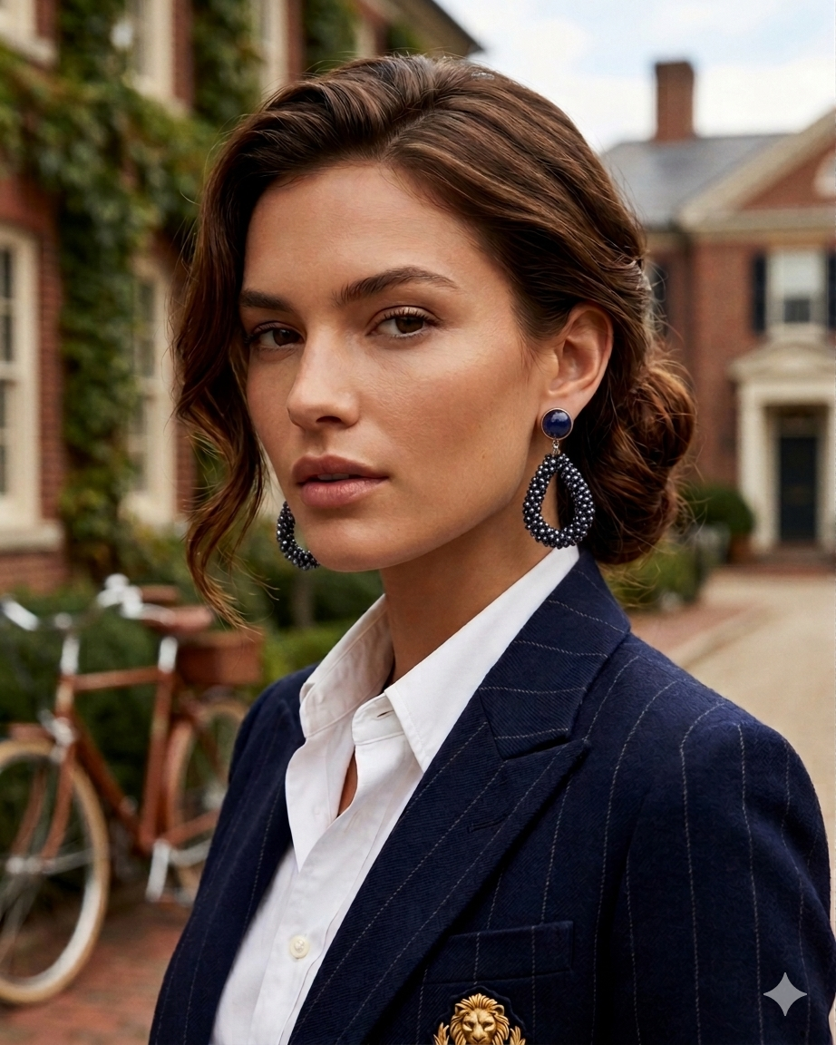 Dieser Ohrring ist gefertigt aus einem Cabochon-Ohrsstecker aus rostfreiem Stahl mit einem glänzenden, dunkelblauen Cabochon-Stein und einem glitzernden Facetten-Perlen-Anhänger in der Farbe "Midnight Blue".