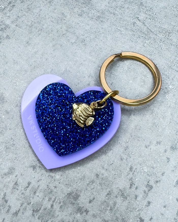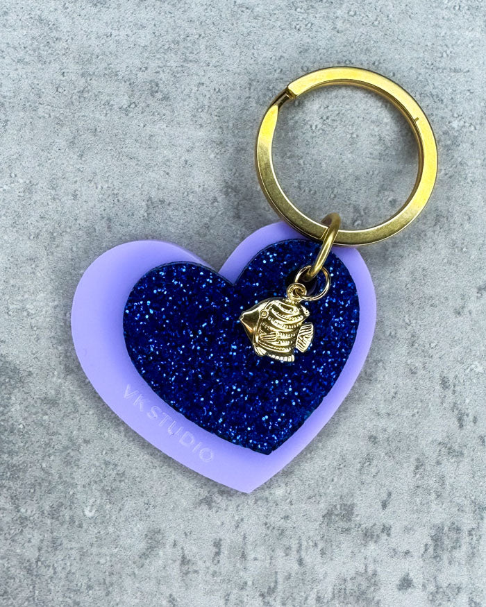 Schlüsselanhänger Herz mit Fisch "Lila und Blau Glitzer"