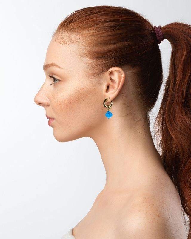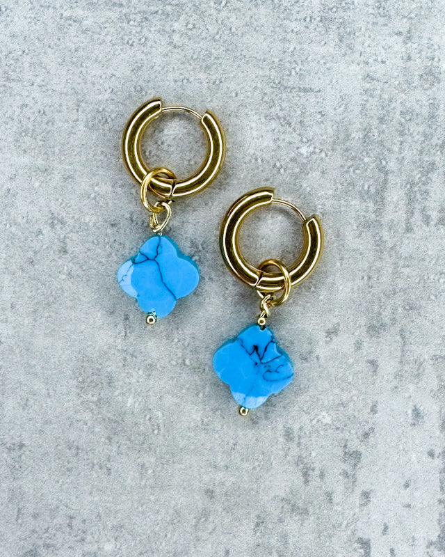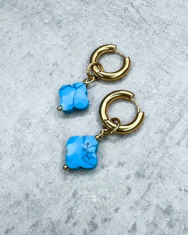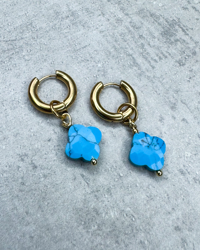 Türkis-Creolen "Kleeblatt" - 1 Paar